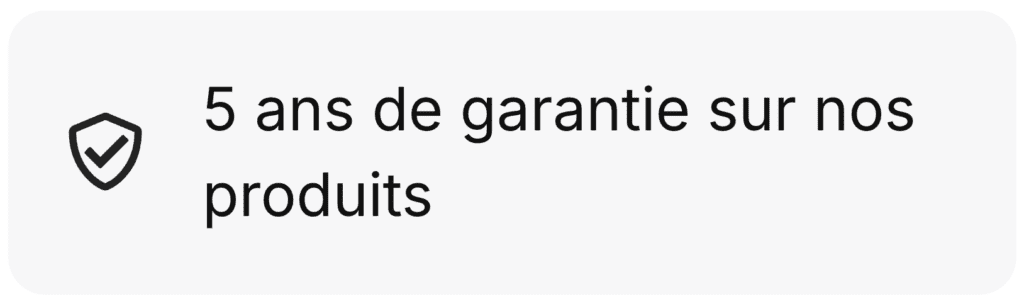 Tous nos produits sont garantis 5 ans, soit bien plus que la garantie standard du marché ! Vous achetez ainsi en toute tranquillité.