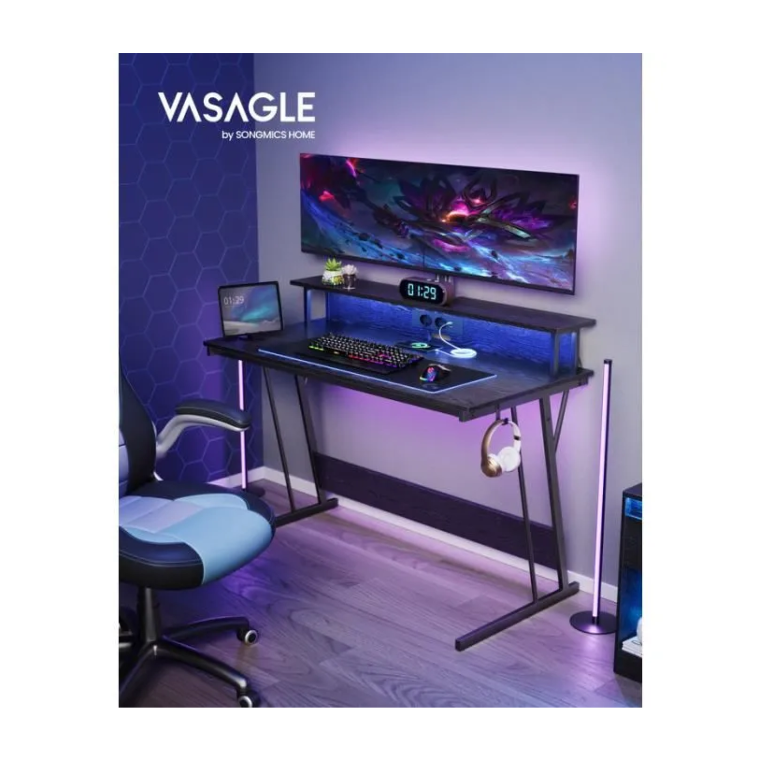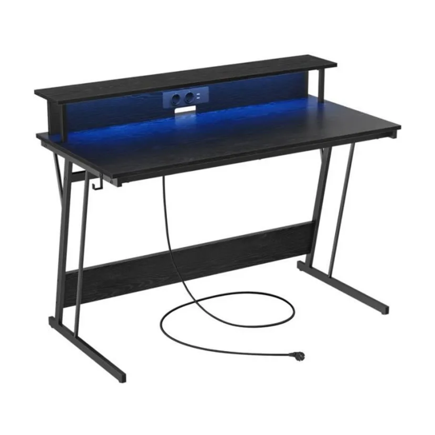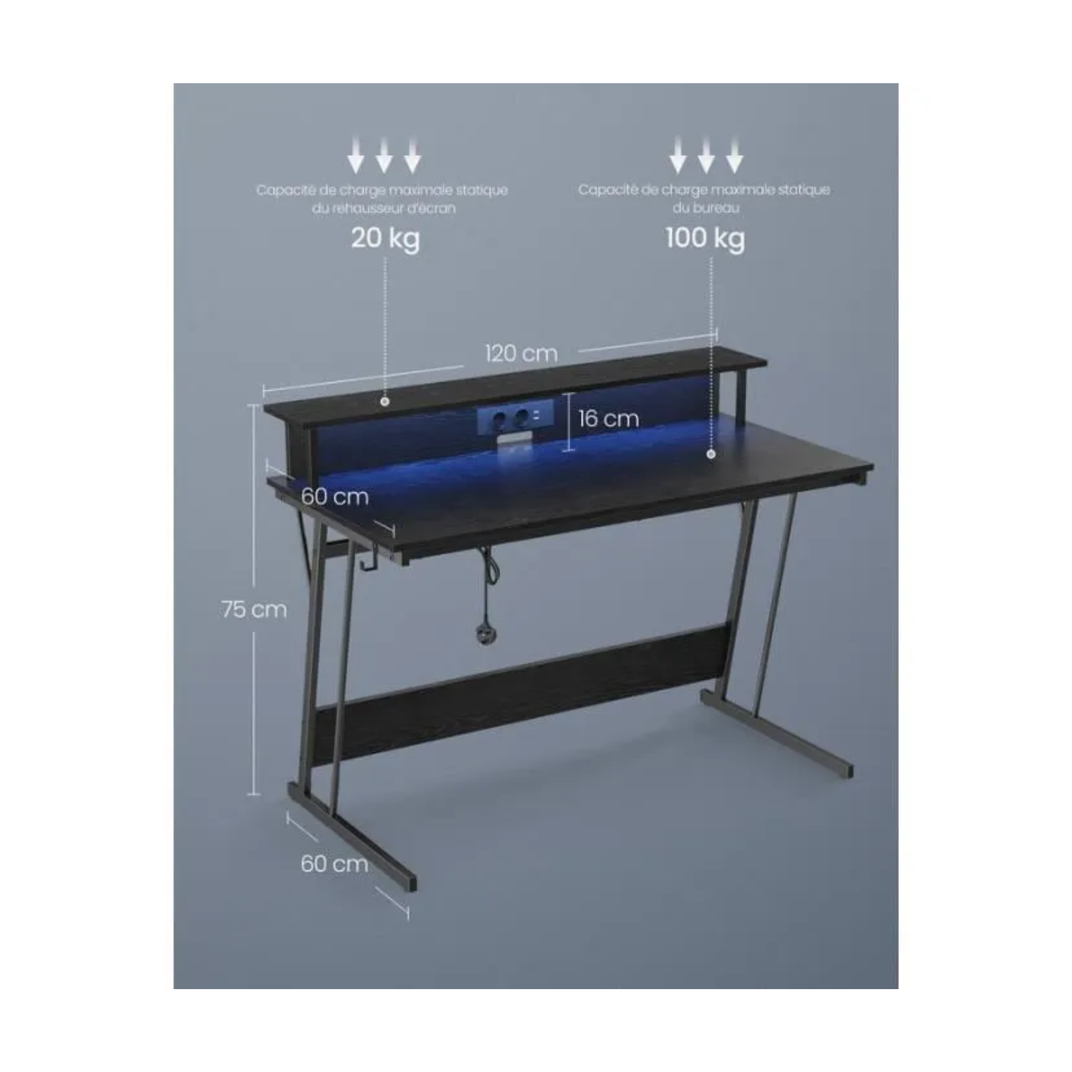 [Bureau polyvalent] Plus qu’un simple bureau gamer, cette table noire élégante peut être utilisée pour travailler ou réviser. Sa couleur noire élégante, sa multiprise intégrée et ses lumières LED en font un meuble stylé et fonctionnel pour tout espace